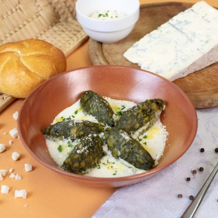 Morbidi gnocchi verdi artigianali composti da spinaci, uova e pane, accompagnati da una gustosa crema di gorgonzola che ne esalta il gusto, donando cremosità ed un tocco di dolcezza. Una ricetta montana semplice, che sa di tradizione e artigianalità. Il nostro consiglio? Da consumarsi ben calda e fumante.