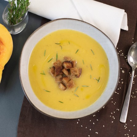 Zucca, acqua, patate, buccia d'arancia, sale, rosmarino.