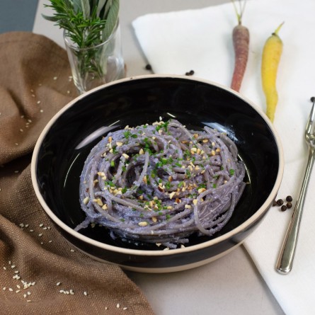 Ormai è chiaro: adoriamo gli ingredienti colorati! L'inverno per noi di Pastra è il momento perfetto per pasticciare e sperimentare con ingredienti ricchi di colore. Il cavolo viola in particolare è il nostro ingrediente stagionale preferito: sapore dalle note dolci e consistenza che si presta perfettamente per essere trasformata in un pesto vegano. Lasciati tentare da un piatto che ti conquisterà ancora prima di assaggiarlo per il suo splendido colore: il viola!